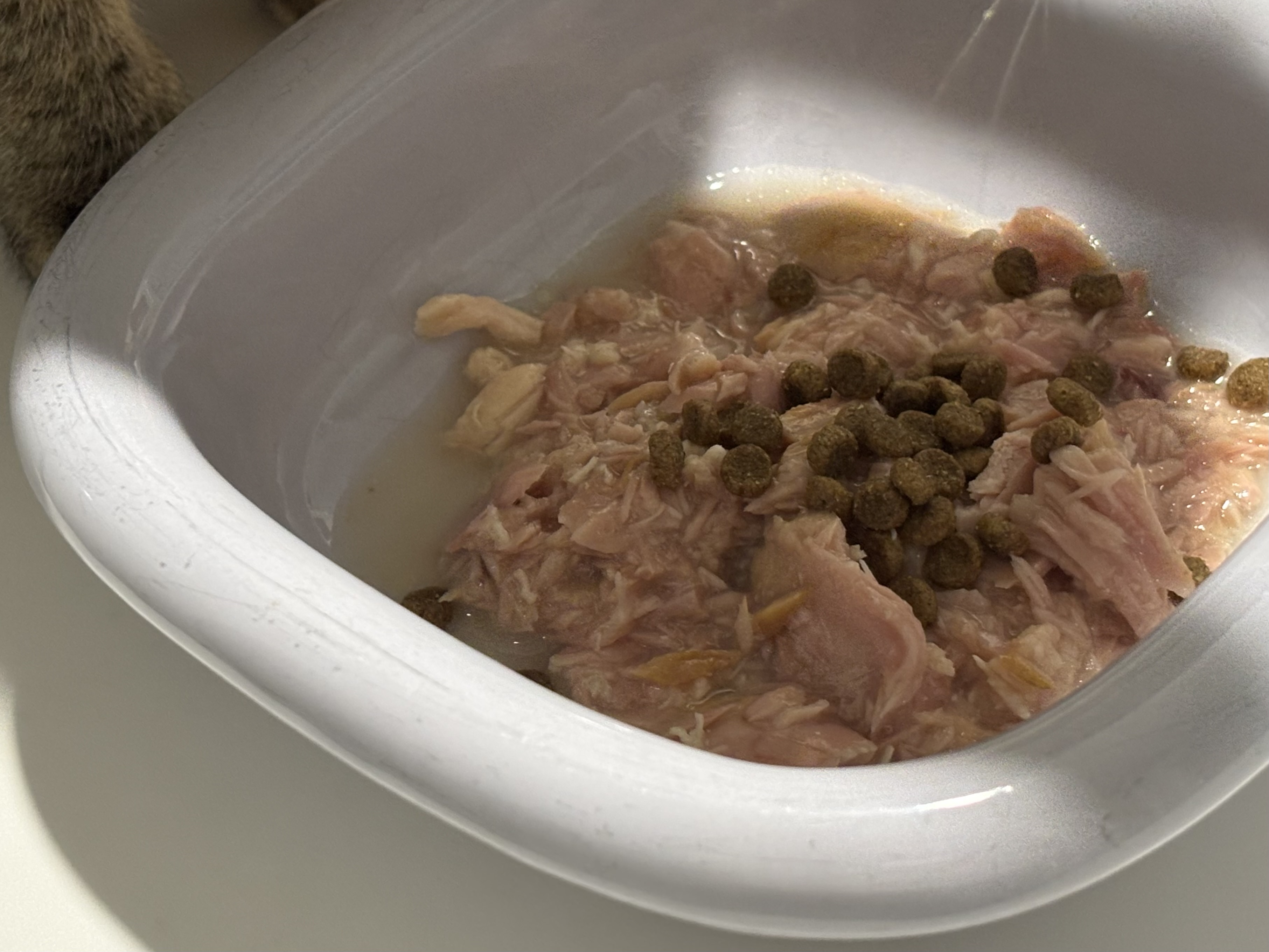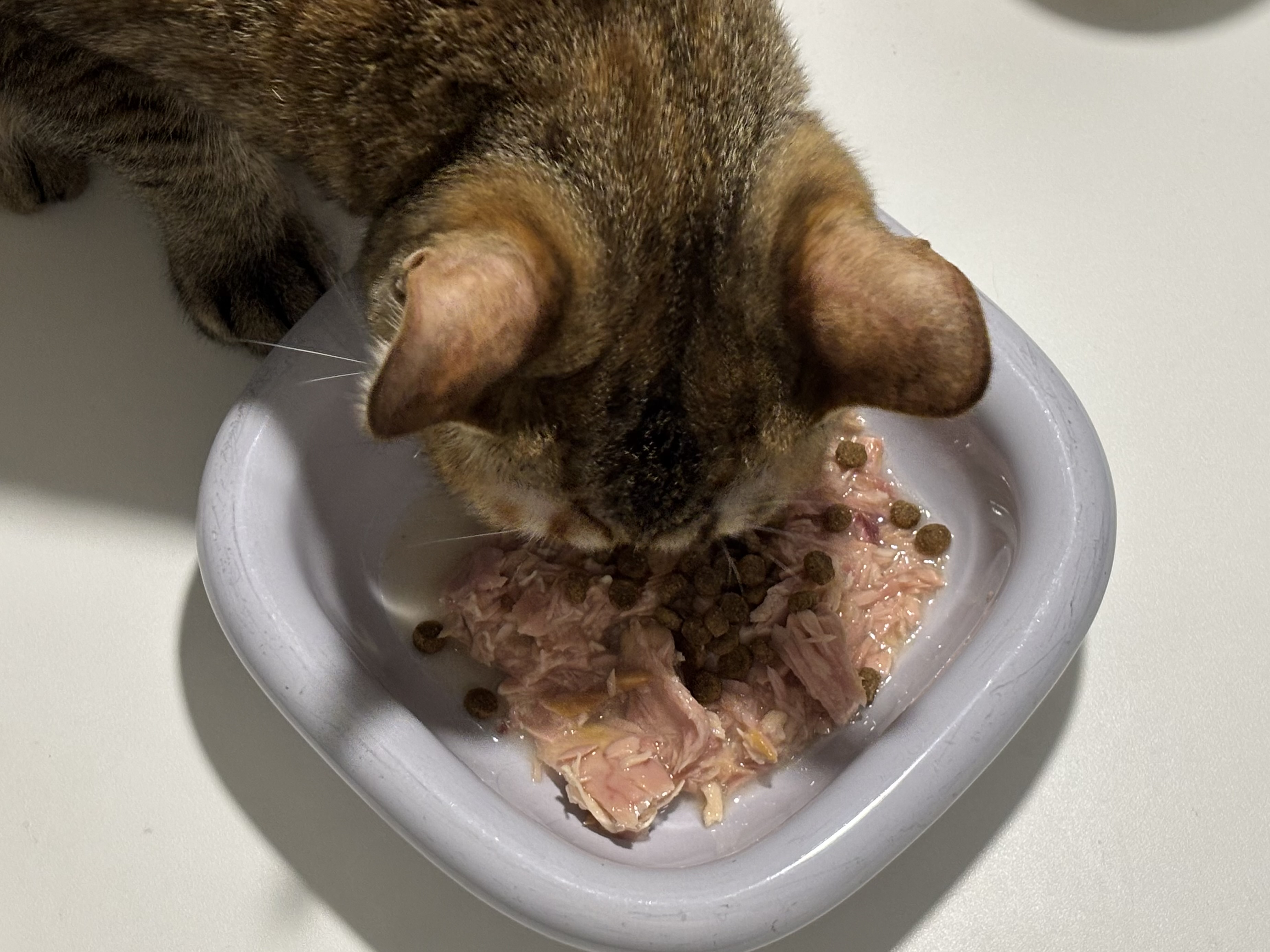 새벽이 반응도 생각보다 괜찮다. 허겁지겁 먹는 타입은 아니지만, 섞어주면 골라내지 않고 같이 먹는다. 오히려 이런 반응이 더 신뢰가 간다. 파테 식감이 지루해질 때, 이 사료가 그걸 살짝 보완해주는 역할을 하는 것 같다. 식사가 덜 지루해지는 느낌이랄까.