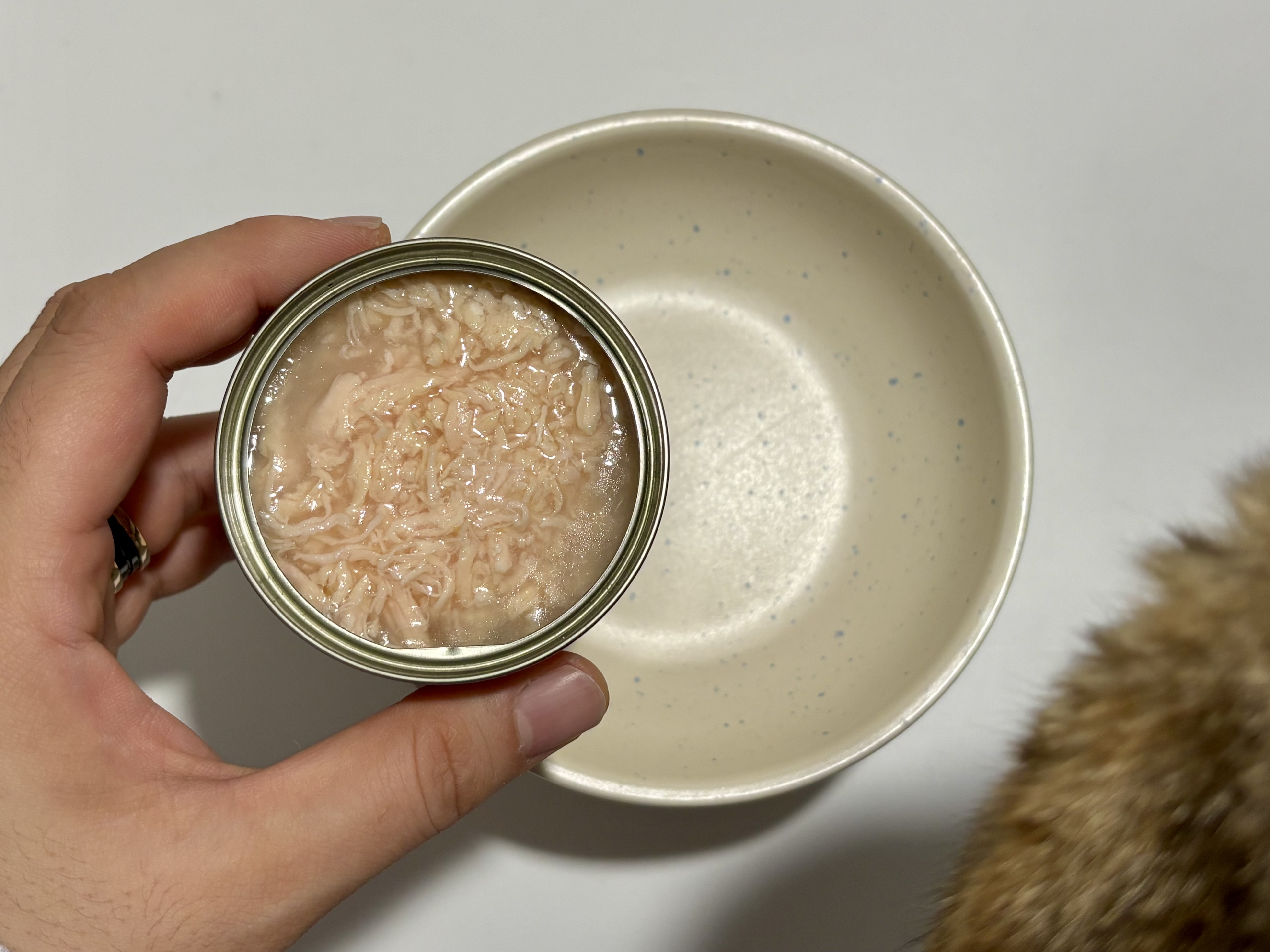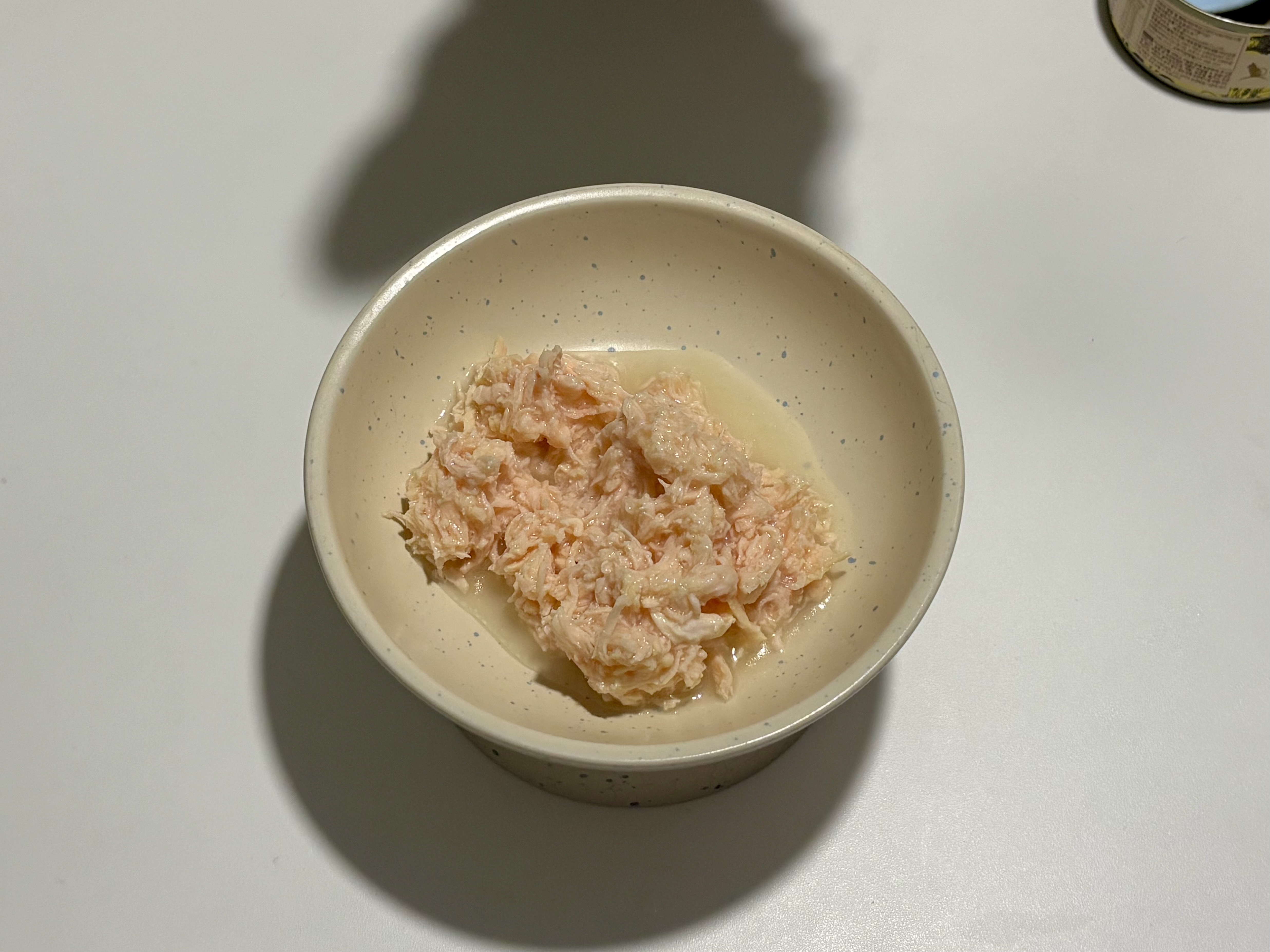 캔을 열었을 때 첫인상은 나쁘지 않았다. 결이 잘 살아 있는 치킨살에 국물도 제법 있는 편이고, 성분도 깔끔하다. 단일 단백질에 불필요한 것 많이 안 들어간 스타일이라 집사 입장에서는 딱 좋아 보이는 캔이다. ‘이건 그래도 먹지 않을까?’ 싶어서 기대를 좀 했던 것도 사실이다.