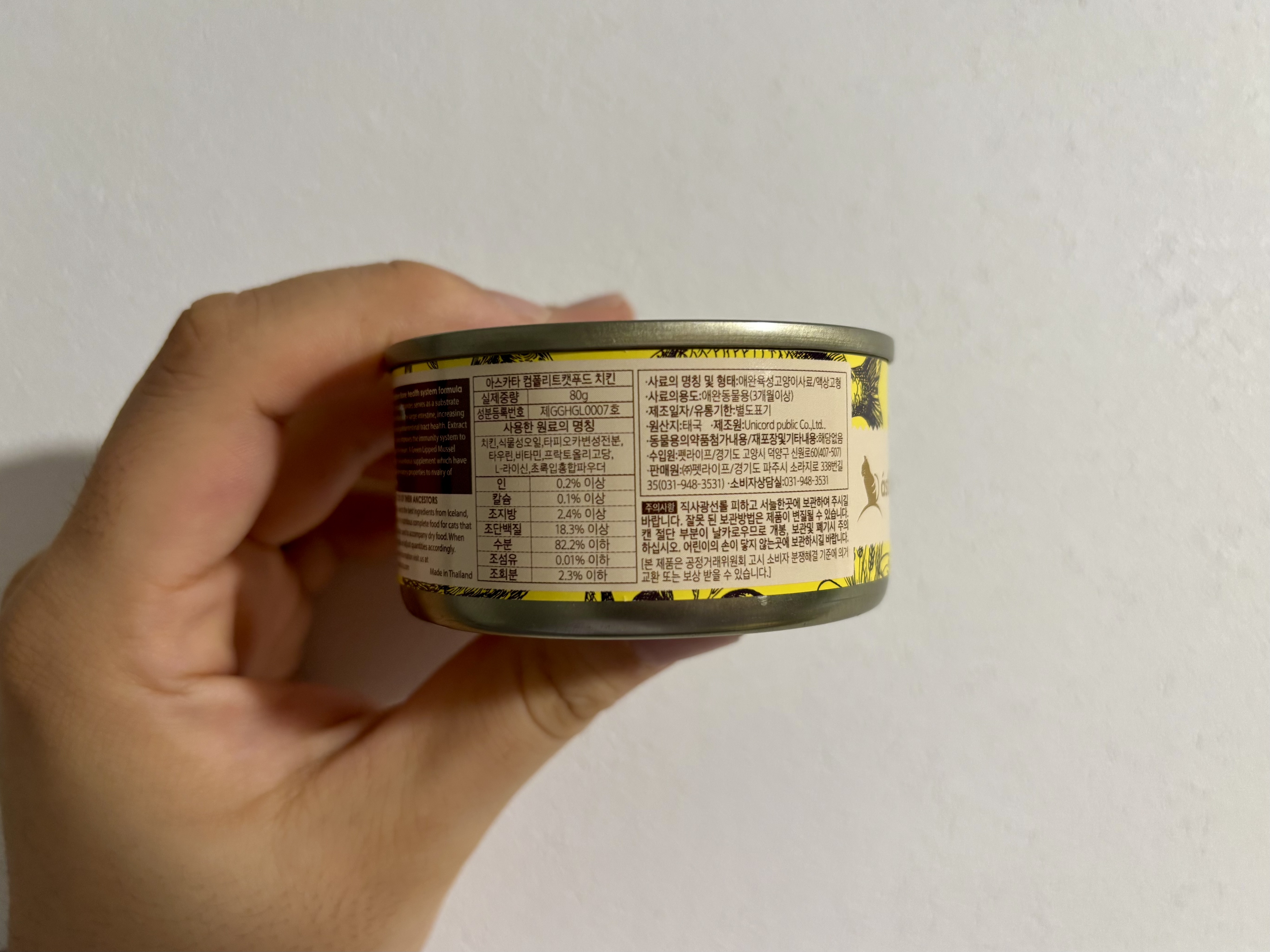 그래도 제품 자체가 나쁘다고 느껴지진 않는다. 성분은 여전히 좋고, 단일 단백질 캔을 찾는 집사라면 충분히 한 번쯤 시도해볼 만한 제품이다. 다만 기호성은 정말 고양이마다 다르다는 걸 다시 한 번 체감한 캔이었다.