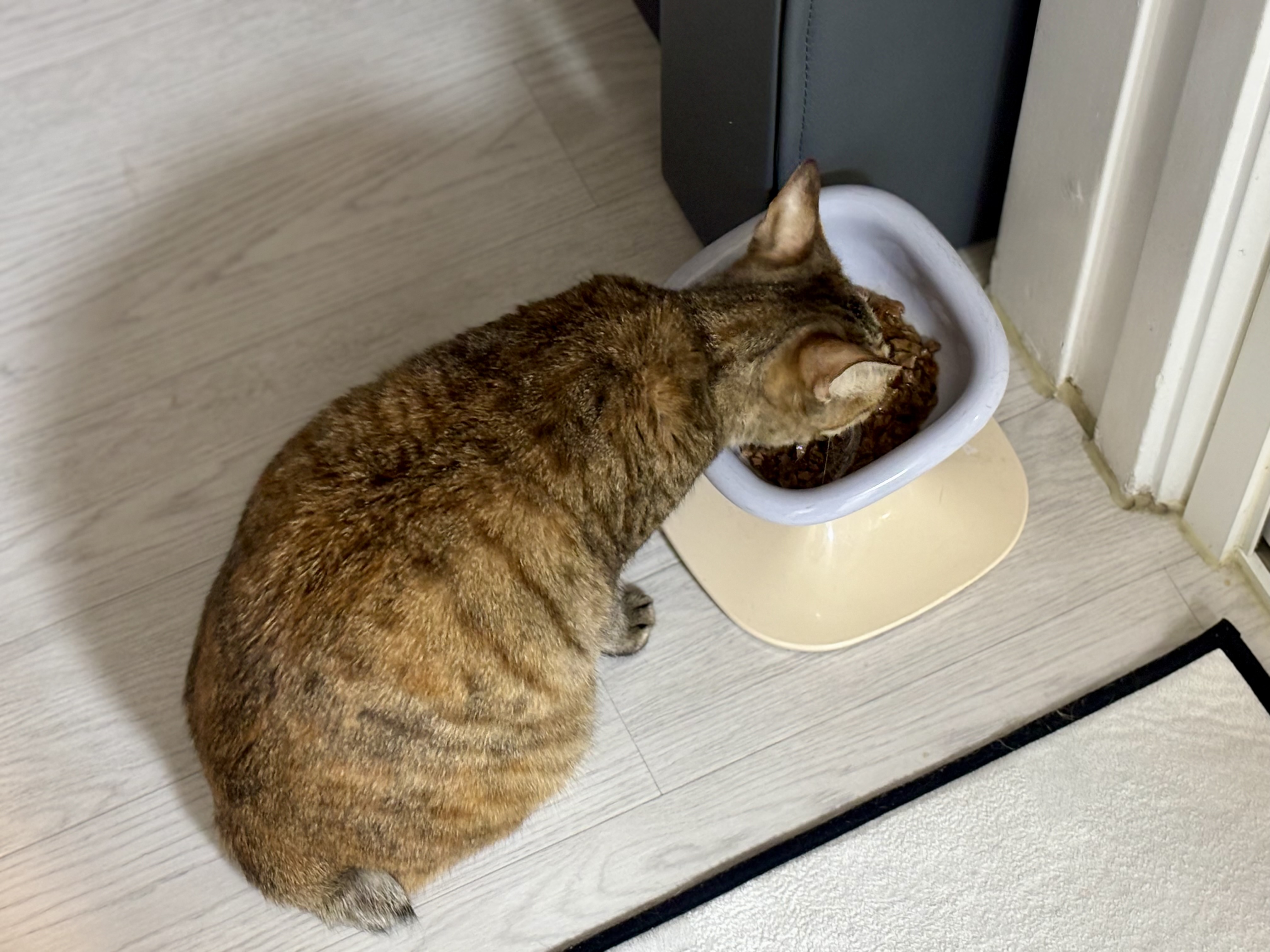 뚜껑을 열자마자 애옹애옹, 제법 크게 울면서 바로 그릇 앞으로 다가왔다. 냄새만 맡고 돌아설 줄 알았는데, 망설임도 없이 먹기 시작했다. 중간에 잠깐 쉬긴 했지만, 다시 와서 또 먹고, 또 먹고. 결국 그릇은 말끔해졌다. 준비해뒀던 니블 간식은 그대로 다시 찬장으로 돌아갔다.