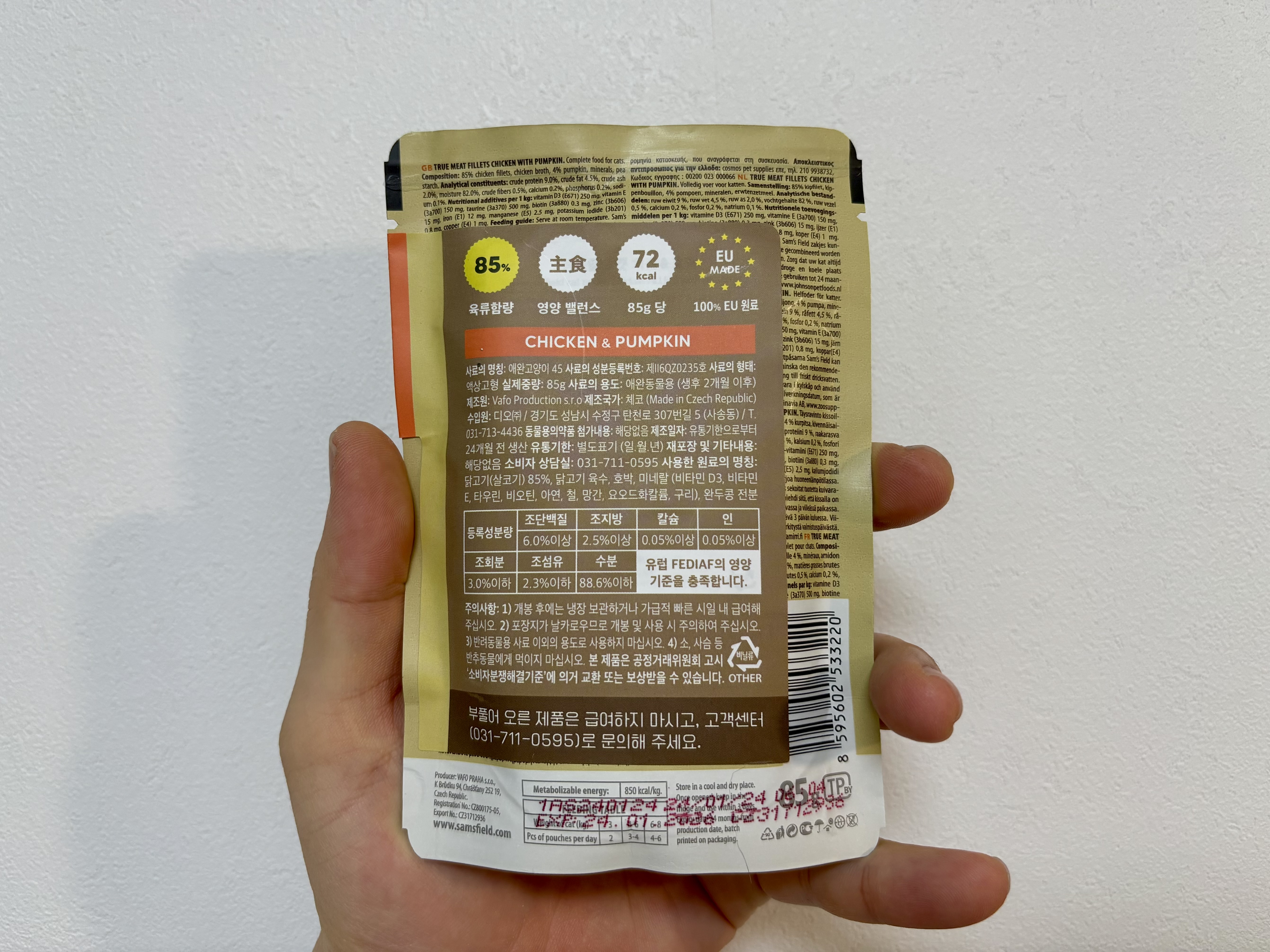 이 제품은 유럽 FEDIAF 영양 기준을 충족하는 완전식이다.