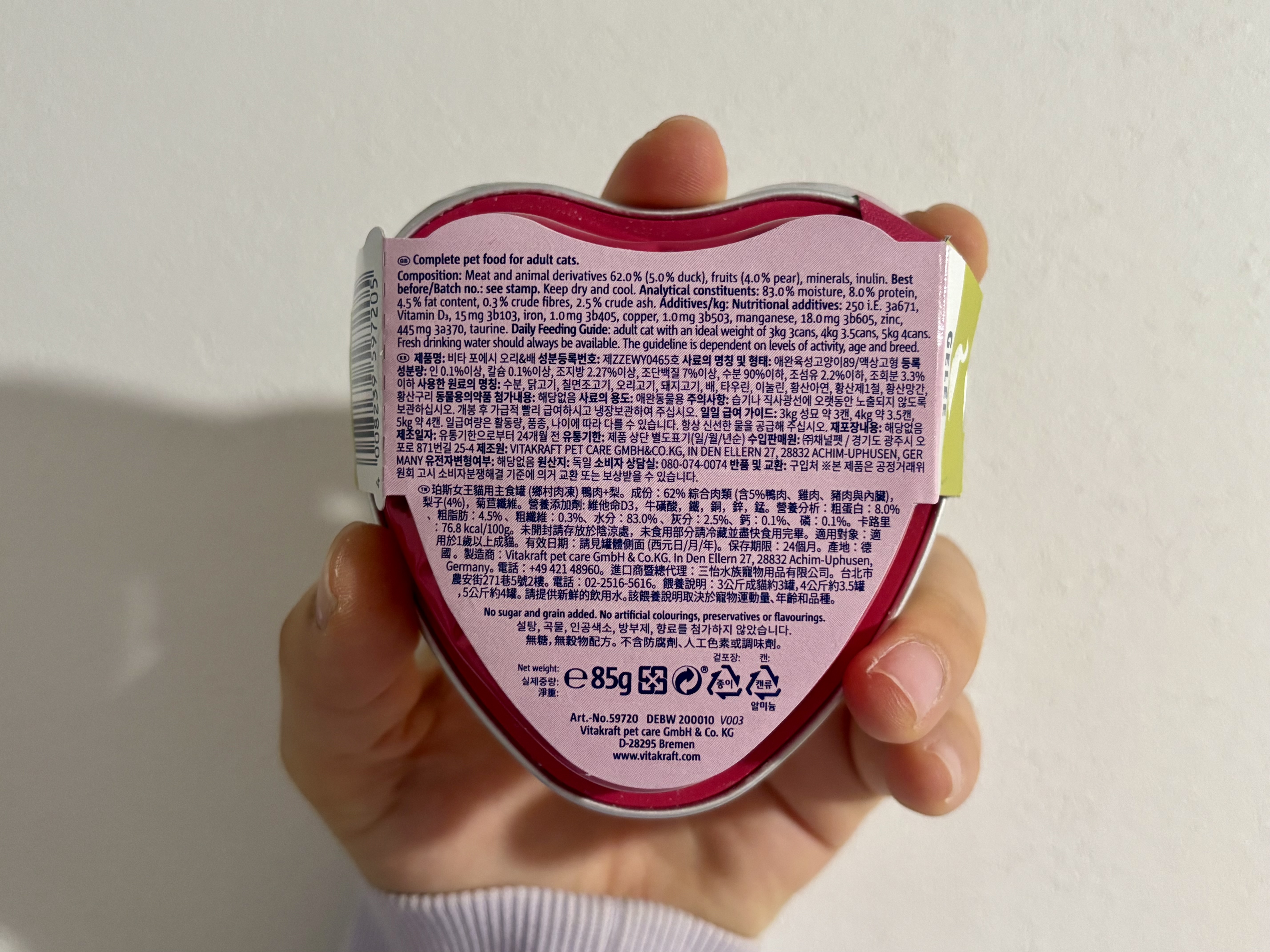 하지만 거부감 없이, 꾸준히 먹어주는 사료라면 그 자체로 충분하다. 특히 새벽이처럼 브랜드보다 제형과 향에 더 민감한 고양이라면, 파테 대신 젤리형을 선택하는 게 하나의 답이 될 수도 있겠다는 생각이 들었다.