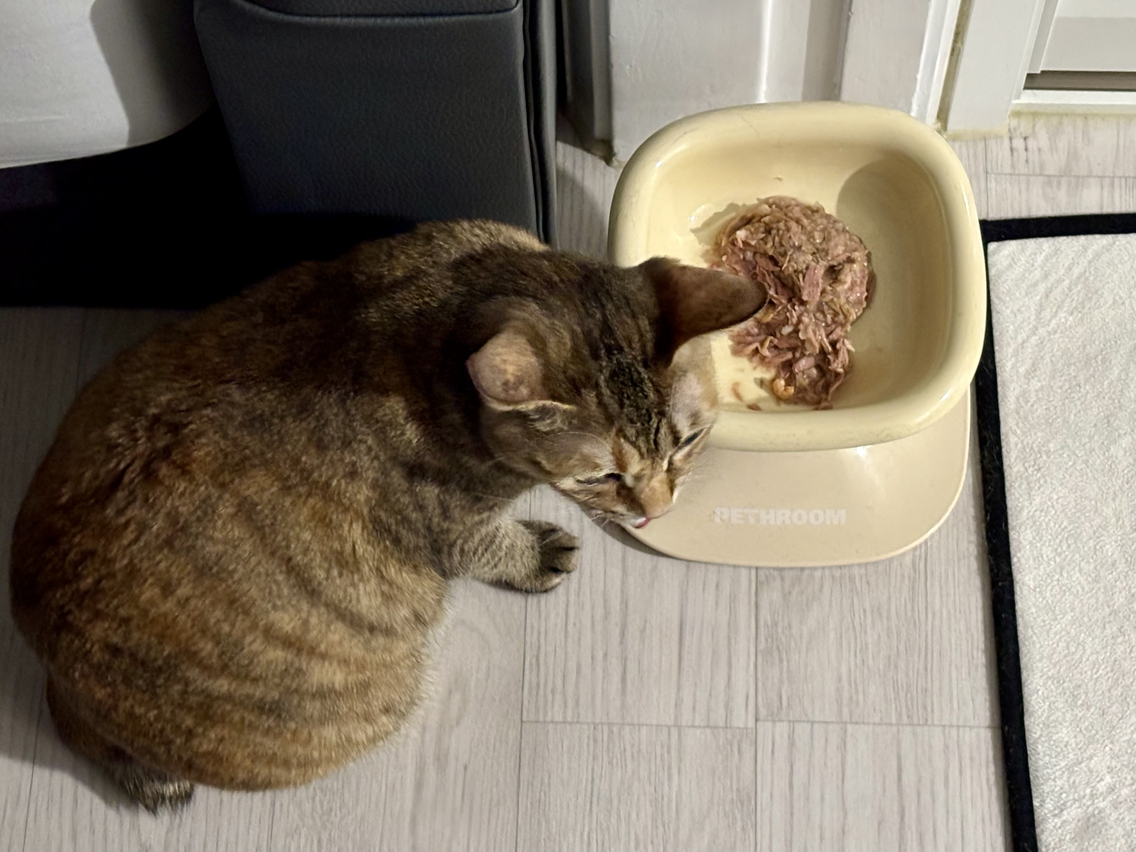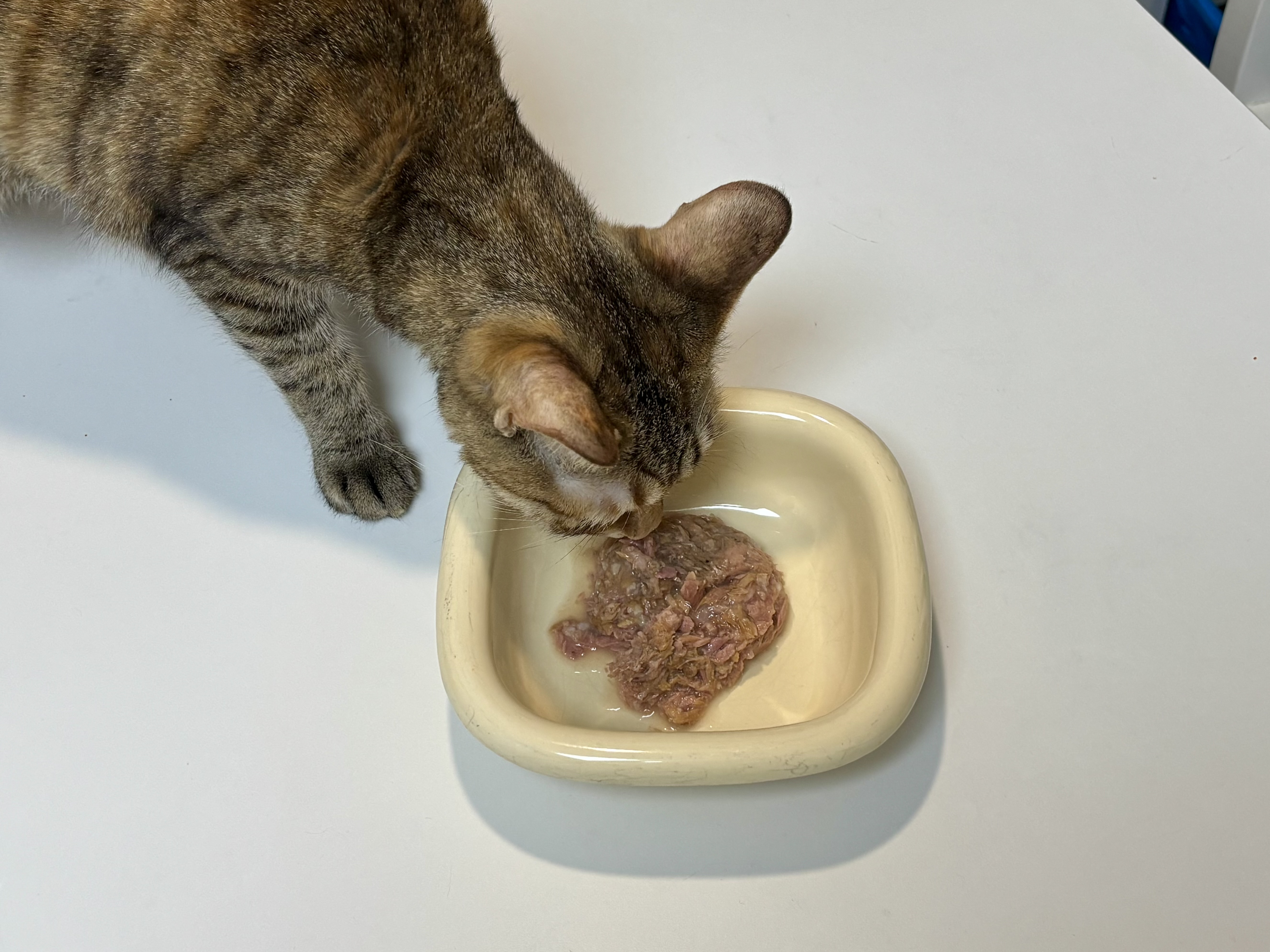 이게 꽤 중요한 포인트다. 새벽이는 마음에 안 들면 아주 명확하게 표현하는 타입이다. 양이나 연어는 냄새만 맡고 돌아서기도 하고, 고등어는 반 정도 먹고 남겨두기도 한다. 그런데 이건 그런 기색이 전혀 없었다.