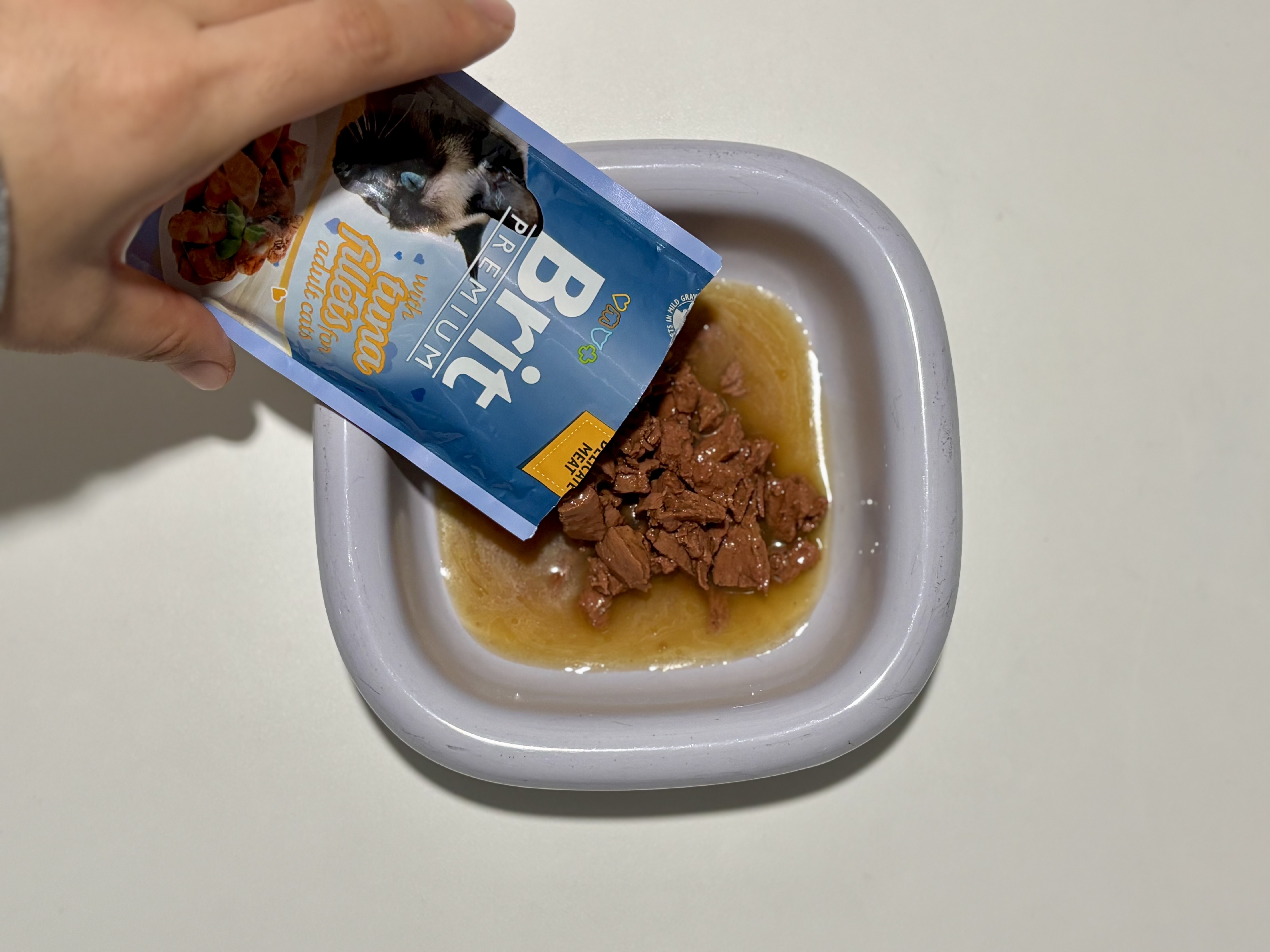 이번에 급여해본 제품은 Brit Premium Tuna Fillets in Gravy 파우치. 평소 Brit 제품군은 새벽이가 꽤 좋아하는 편이라 사실 큰 고민 없이 선택한 메뉴였다. 게다가 참치에 그레이비라니, 실패 확률이 높지 않은 조합 아닌가.