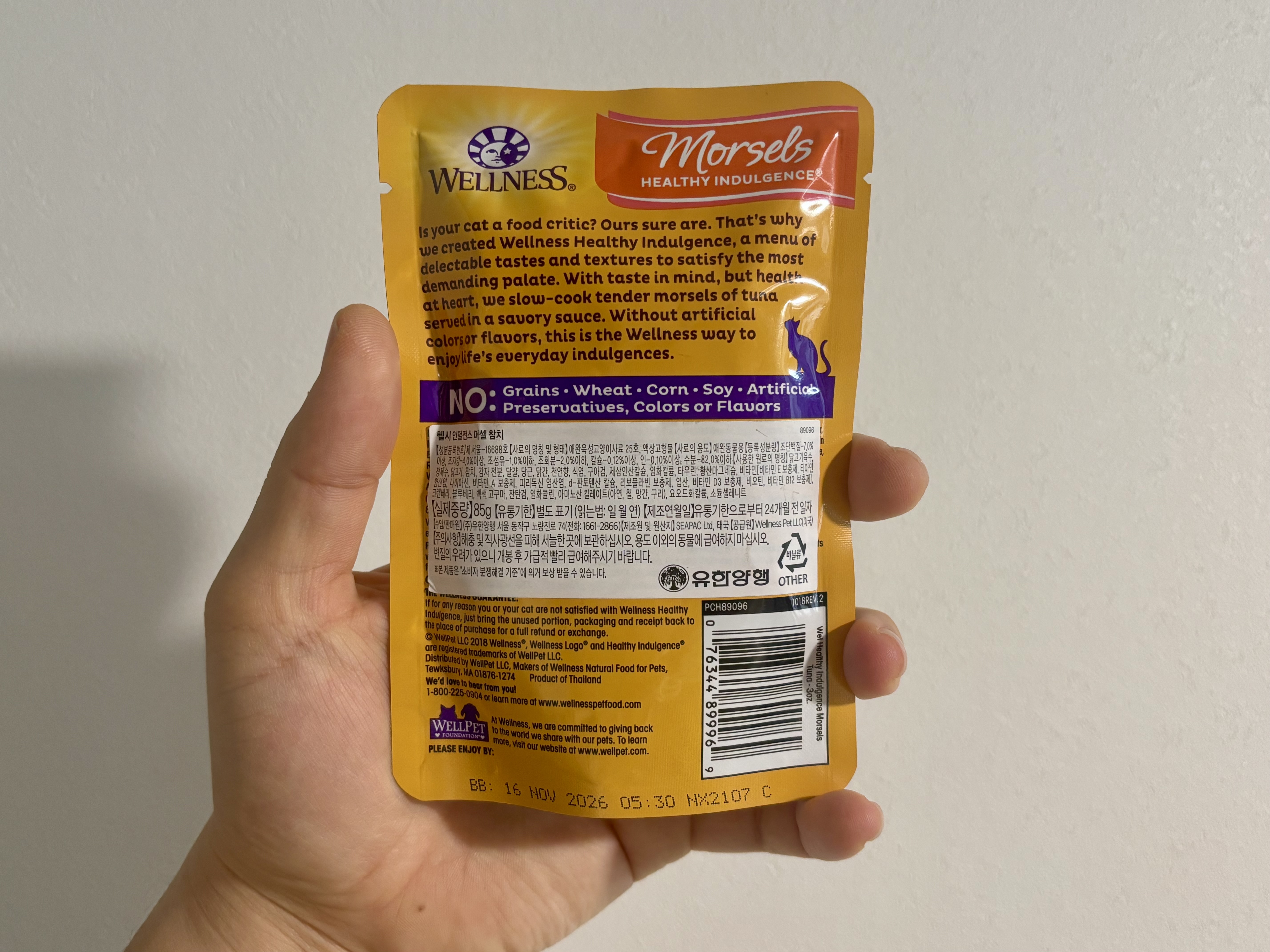 새벽이가 좋아하는 제품 라인이 몇 개 있는데, 웰니스 헬시 인덜전스는 그중에서도 실패 확률이 거의 없는 편이다. 그래도 이번엔 참치니까, 솔직히 조금은 더 기대가 됐다.