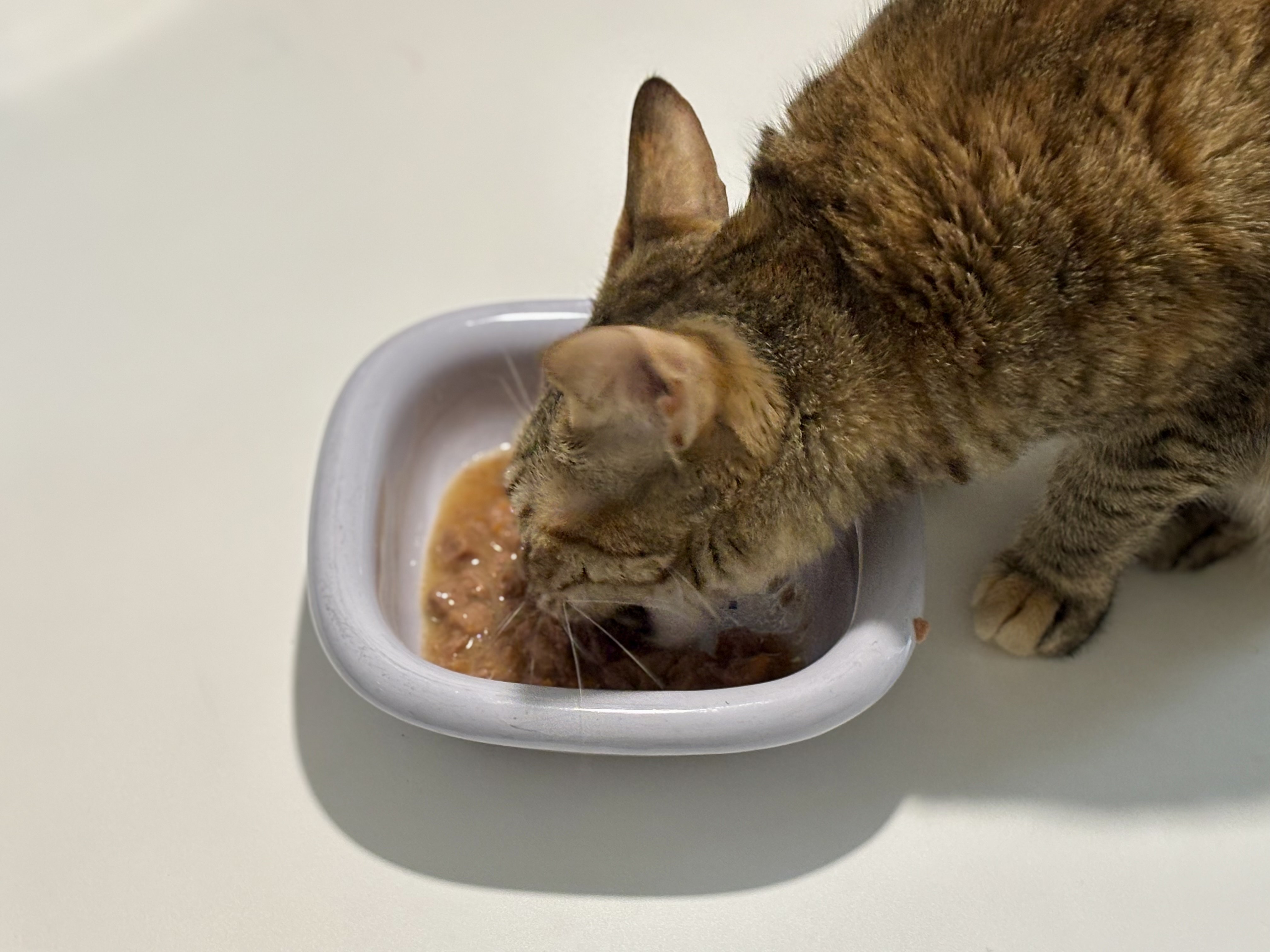 보통은 한 번 냄새를 맡고, 잠깐 생각하는 시간이 있는데 이건 그 과정이 거의 없었다. 소스만 핥는 게 아니라 덩어리부터 먹는 걸 보면 정말 마음에 든다는 신호다. 중간에 물러나거나, 발을 털고 가버리는 행동도 전혀 없었다. 그냥 끝까지 안정적으로 먹었다.