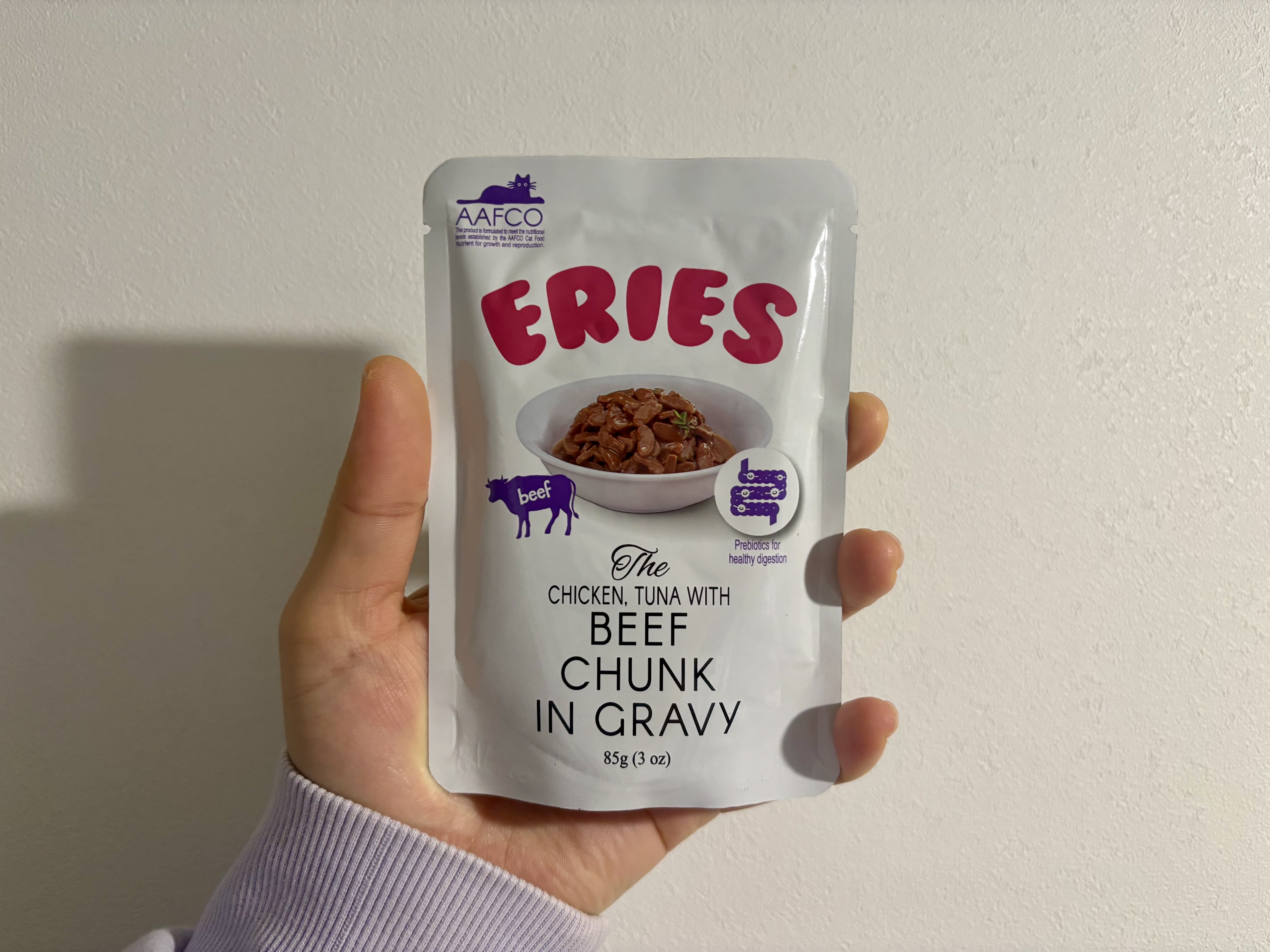 고양이 사료를 먹이다 보면, 어떤 제품은 특별히 기대하지 않았는데 의외로 반응이 좋은 경우가 있다. 이번에 먹여본 ERIES Chicken, Tuna with Beef Chunk in Gravy가 딱 그런 제품이었다.