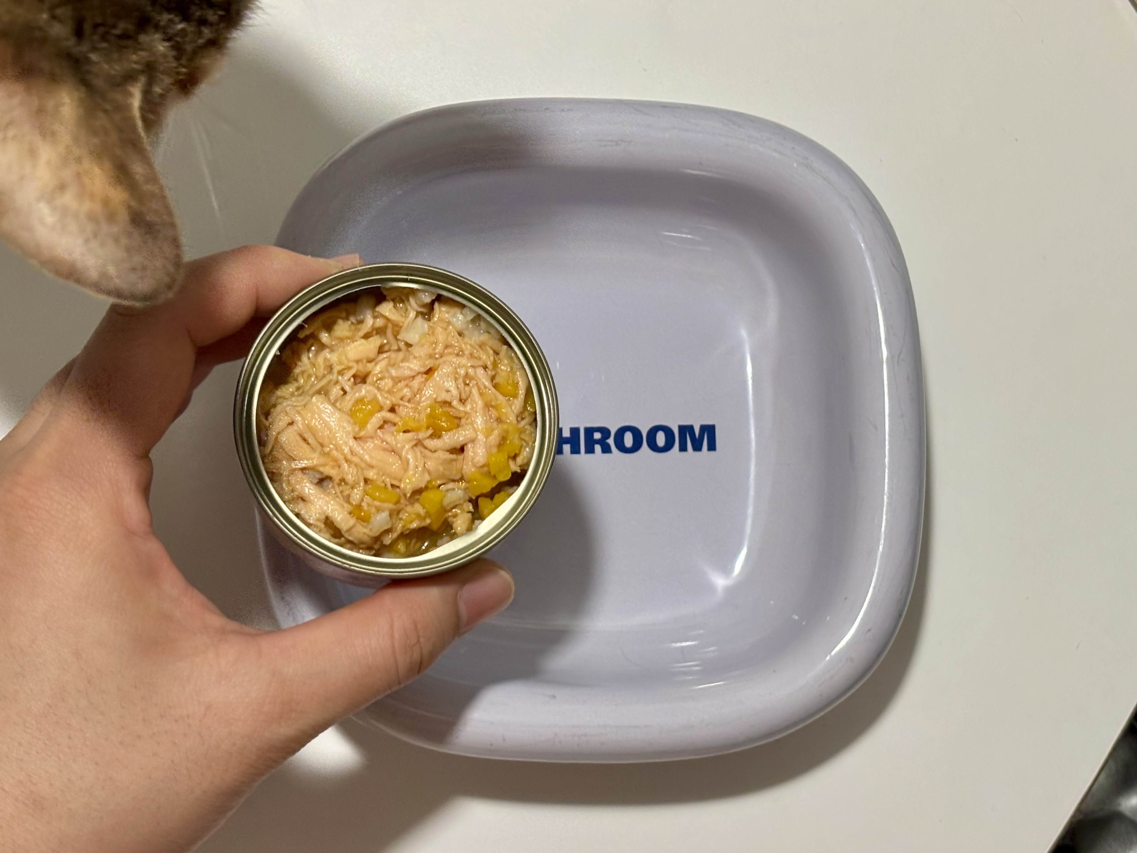 원래는 사진을 찍고 그릇에 담아서 급여하려고 했는데, 새벽이가 계속 캔 안에 있는 사료를 그대로 먹으려고 머리를 들이밀었다. 평소에는 그래도 어느 정도 기다려주는 편인데, 이번에는 계속 캔에 코를 박고 먹으려고 해서 사진 찍기가 꽤 힘들 정도였다. 그만큼 냄새가 강하게 느껴졌던 것 같았다.